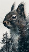 Toen Emma deze foto's combineerde, gebeurde er iets magisch. Het hert leek nu één te zijn met het bos. Zijn silhouet werd gevuld met de kronkelende takken en het zachte licht van de bomen, waardoor het leek alsof het hert en het bos ademden als één wezen.