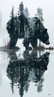 Toen Emma deze foto's combineerde, gebeurde er iets magisch. Het hert leek nu één te zijn met het bos. Zijn silhouet werd gevuld met de kronkelende takken en het zachte licht van de bomen, waardoor het leek alsof het hert en het bos ademden als één wezen.