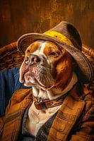 Deze charismatische pitbull, gekleed in een stijlvol pak en hoed, straalt een onmiskenbare coolheid uit. Zijn zelfverzekerde blik en ontspannen houding nodigen uit tot een moment van reflectie en bewondering. Een uniek kunstwerk dat een vleugje humor en persoonlijkheid toevoegt aan elke ruimte.