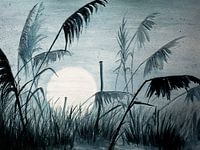 Canticle - Originalaquarall (60x80) 2014) Auimpression, riet, grassen, zwart en wit, natuur, landschap, schoonheid, meditatief, inspiratie, het schilderen, het schilderen, waterverf, zon, Mystiek , magisch ,