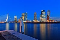 schemering valt over de moderne architectuur op de Rotterdamse Kop van Zuid gezien vanaf de Westerkade; Rotterdam, Nederland