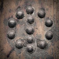 Oude spijkers of nagels in houten bord. Deze versie is speciaal geschikt gemaakt voor ronde print. Een rustige afbeelding voor bijvoorbeeld in de slaapkamer of in de hal.