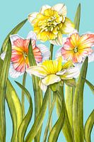 Narcissen in het voorjaar in geel en oranjekleuren gemaakt in aquarel en digitaal bewerkt.