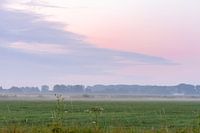 nevelig landschap bij dageraad met een prachtige roze lucht
