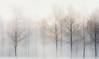 Dit etherische kunstwerk straalt een gevoel van rust en mysterie uit. Een rij kale bomen die in de mist verdwijnen, waardoor een dromerige en bijna surrealistische sfeer ontstaat. De zachte overgangen van licht naar schaduw benadrukken de delicate structuur van de takken, die fragiel lijken maar toch standvastig staan te midden van de…