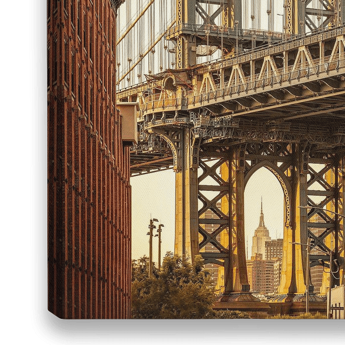 de beroemde Manhattan brug tijdens zonsondergang