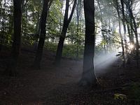 zonneharp door de bomen bij Mookerheide op een herfstochtend