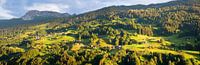 ochtendzon over groene Prattigau heuvels, Conters dorp en Gotschna berg, Zwitserland