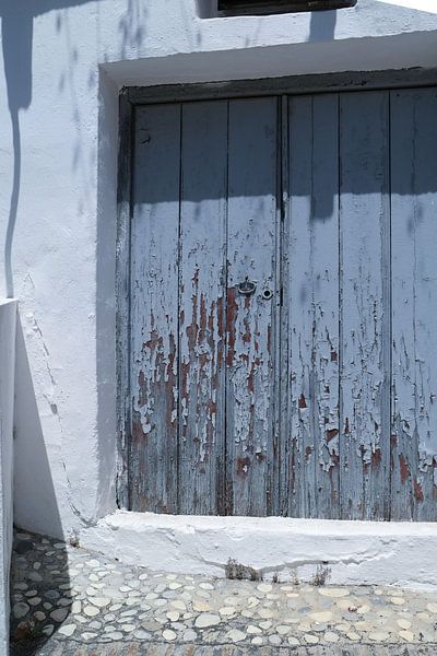 spanje, de plek voor oude deuren, deze deur is baluw grijs van kleur. totaal verweerd en heeft een likje verf nodig