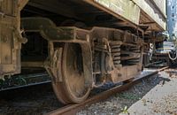 old rusted dirty wheels from train on railroad in hombourg belgium