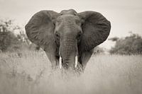 portret van een olifant in kruger park, zuid afrika uitgevoerd in licht sepia