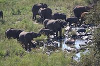 Koop de foto olifanten groep van Jeroen Meeuwsen als print op canvas, aluminium dibond, (ingelijste) fotoprint, behang en ArtFrame. Voor jou op maat geprint in Fine-Art kwaliteit.