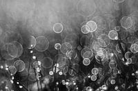 Weide met dauwdruppels in zwart/wit