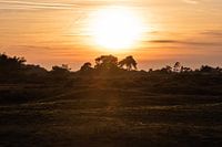 het landschap van het nationale park de Hoge Veluwe in de winter, op het moment van een prachtige zonsondergang