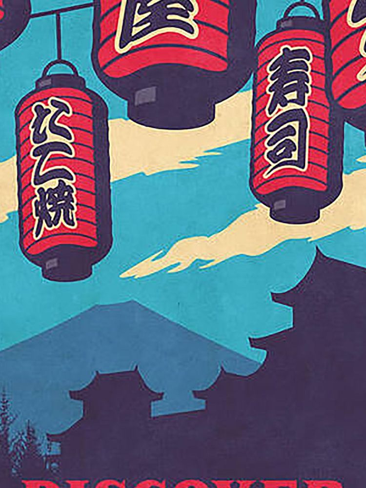japan reizen toerisme met japanse kasteel montain fuji lantaarns retro vintage