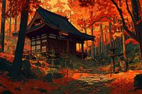 schilderachtige minimalistische fictieve oosterse kunst Japan met verschillende onderwerpen en in diverse stijlen