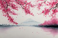 schilderachtige minimalistische fictieve oosterse kunst Japan met verschillende onderwerpen en in diverse stijlen