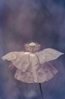 Macrofoto van een geheel open klaproos met wat extra fantasie.