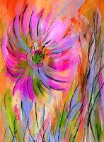 Een kleurrijk en expressief bloemenschilderij voor de woonruimte met grafische elementen. Het straalt optimisme en vrolijkheid uit. De schoonheid van de natuur biedt altijd onuitputtelijke bronnen…
