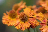 close up van licht oranje herfstbloemen, met een groene achtergrond