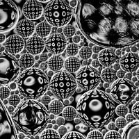 "Orde in de chaos" (zwart-wit stippen in bubbels) is een zwart-wit foto, waarbij een zwart-wit patroon vertekend wordt,door gebruik te maken van de breking van het licht.