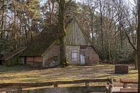 oude boerderij in nederland bij buurse in het natuurgebied buurserzand, met een houten hek aan de voorkant en een bos op de achtergrond