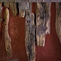 Een heel oude deur of restant daarvan in een Griekse stad. Een close up van deze deur geeft een mooie prent