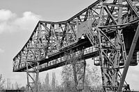 oude kraan van een voormalig hoogovencomplex in zwart wit. Foto is genomen in het oude Hoogovencomplex Lapadu, in Duisburg, Duitsland.