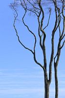 oude kale boom met gebogen takken tegen de blauwe lucht, kopieerruimte