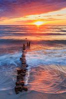 oude kribben aan de Oostzee in het licht van de ondergaande zon...