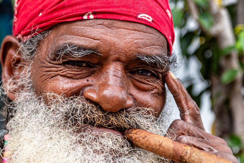 Fotoportret oude man met baard en sigaar in Havana Cuba