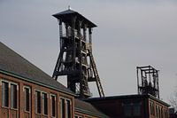 de oude mijn in tessenderlo een prachtig beeld van oud metaal in roest en gebroken glas waar het mijnverleden terug tot leven komt . koolmijn , ijzer, spoor van de trein wagens, oude treinwagon , steenkoolmijn