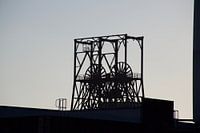 de oude mijn in tessenderlo een prachtig beeld van oud metaal in roest en gebroken glas waar het mijnverleden terug tot leven komt . koolmijn , ijzer, spoor van de trein wagens, oude treinwagon , steenkoolmijn, treinwiel