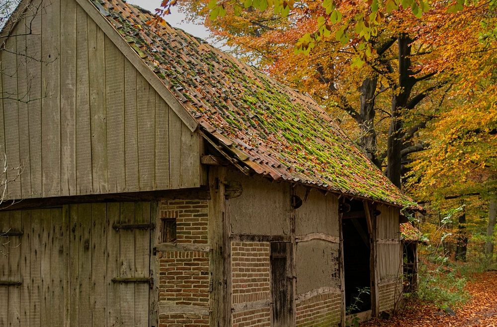 Over "oude vervallen boerderij in een twents bos met herfstkleuren"