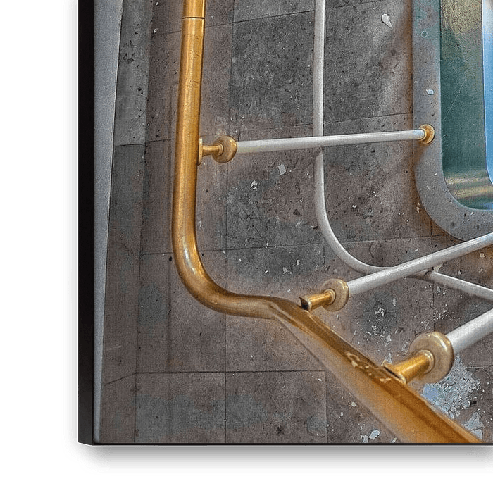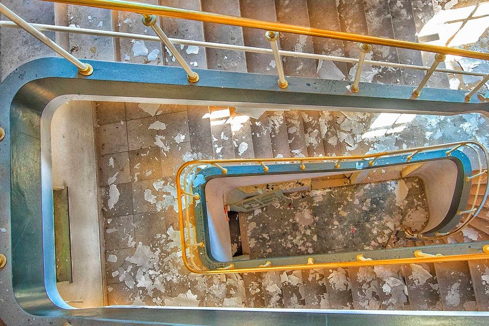 In een oude trappenhal komt vergankelijkheid heel duidelijk naar voren .