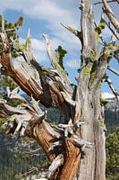 Eeuwenoude sequoia die is verwoest door een brand en een nieuwe habitat biedt voor mossen.