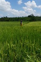 de zomer warmte straalt er vanaf, deze prachtige groene rijstvelden met eigen tempel zorgen voor heerlijk eten en een prachtige achtergrond die rust en een heerlijk zomers gevoel uitstraalt