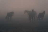 deze foto heeft dankzij de mist een heerlijke sfeer. De paarden vonden het in ieder geval prachtig. Ik zelf trouwens ook.