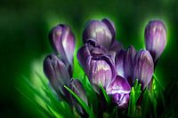 paarse krokusjes vallen mooi op in het groene gras. Mooi contrast