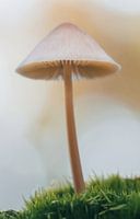macrofoto van 1 paddestoel op een dun steeltje