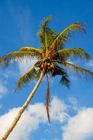 De kust van het eiland Sri Lanka kent prachtige stranden en baaien waar de palmbomen prachtig afsteken tegen de blauwe luchten.