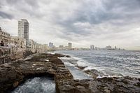 panoramisch uitzicht op de skyline van Havana en de beroemde boulevard Malecon. Havana, Cuba.