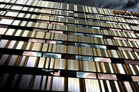 Een gesolariseerde versie van een foto van een parkeergarage.