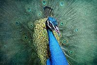 Edele, trotse pauw met prachtig verenkleed in groen en blauw