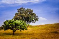 Bomen eenzaam in het landschap rustig licht golvend op de windstromen.