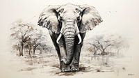 Koop dit digital art kunstwerk pentekening van een olifant van Gelissen Artworks als reproductie op canvas, aluminium dibond, (ingelijste) fotoprint, behang en ArtFrame, op maat geprint in Fine-Art kwaliteit.
