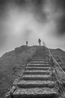FUNCHAL,PORTUGAL-MARCH 24,unidentified people walking on the top of the pico arieiro mountains on march 24 2016 in Funchal,this mountain is one of the 2 highest on Madeira island