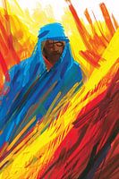 Dit abstracte meesterwerk vangt de essentie van menselijke emotie in een explosie van kleuren. De felle tinten van geel, oranje en rood dansen als vlammen rond een mysterieuze figuur, gehuld in een koele blauwe mantel. Het lijkt alsof de ziel van de persoon op het punt staat los te breken van het canvas, gedreven door een onzichtbare…