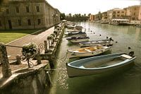 Italië, aan de rivier in het pittoreske plaatsje Peschiera del Garda.