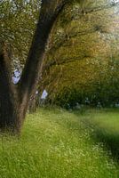 Close up van een bomenrij met op de grond Anthriscus sylvestris, ofwel fluitenkruid. Hier is gebruik gemaakt van meervoudige belichting, waar 5 foto's werden samengevoegd in de camera, wat voor een schilderachtig effect zorgt.